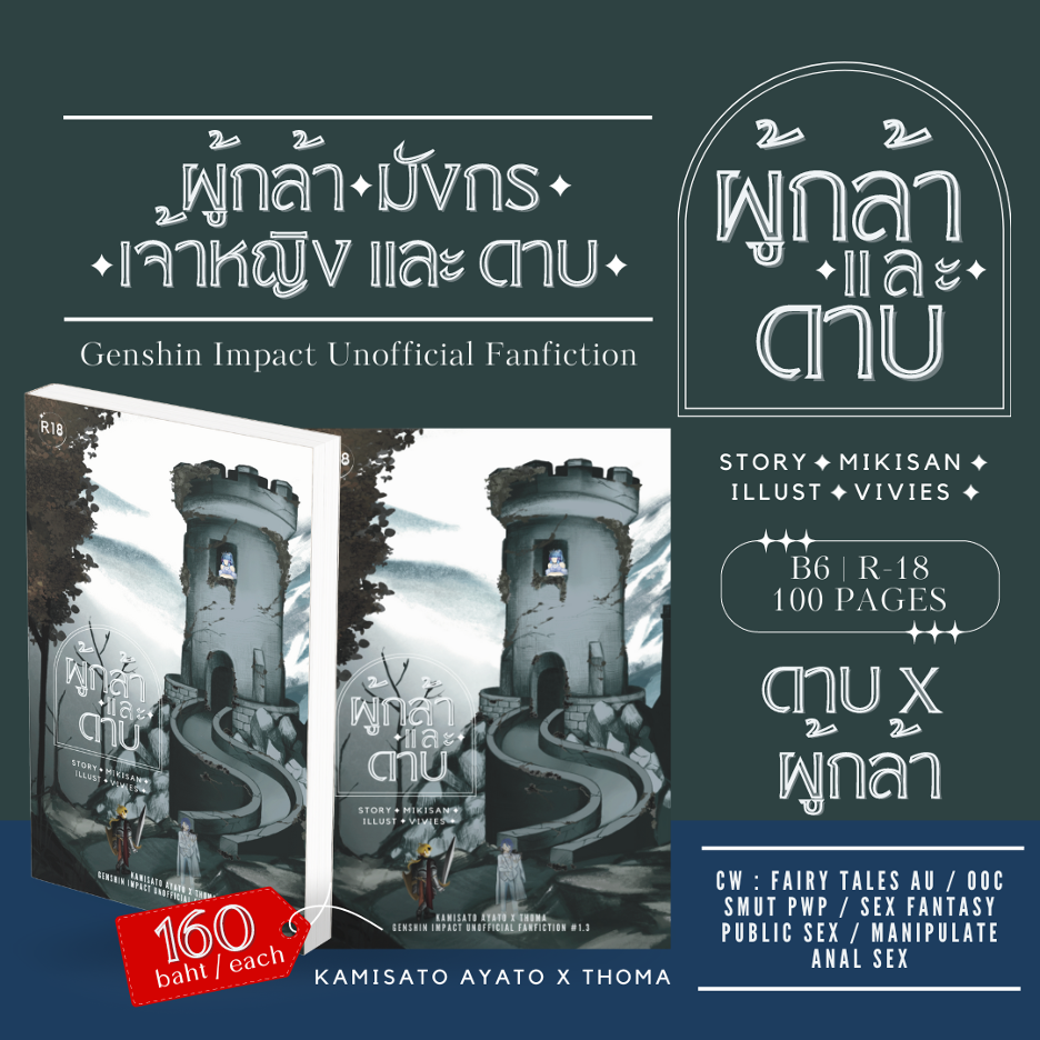 ราคา : B6 Fiction / 100 Pages จำนวน 5 ตอน NC 3 ตอน ราคา 160 baht per each แถมที่คั่นหนังสือฟรีทุกออเดอร์ * หนังสือพร้อมส่ง สามารถสั่งได้เรื่อยๆจนกว่าสินค้าจะหมด * [NeuviThesley] ผู้กล้า และ มังกร | มังกร x ผู้กล้า Content Warning : PWP / Sex Fantasy / Mpreg / Cunt Boy / Hemipenis / Dragon Cock / Egg-Laying / Eggpreg / Pregnant Sex / Erotic Birth / Public Sex / Outdoor / Male Lactation / Ahegeo / Creampie [HaiKaveh] ผู้กล้า และ เจ้าหญิง | ผู้กล้า x เจ้าหญิง Content Warning : PWP / Sex Fantasy / Fuck with Benefits / Anal Sex / Cross-Dressing / Drunk Sex / Come Inflation / Ahegeo / Creampie / Blow Job / Large Cock / Fuck Machine / Roleplay [AyaThoma] ผู้กล้า และ ดาบ | ดาบ x ผู้กล้า Content Warning : PWP / Sex Fantasy / Fuck with Benefits / Anal Sex / Blow Job / Public Sex / Outdoor / Dominance-Submission / Manipulation / Dirty Talk / Ahegeo / Creampie / Roleplay ทดลองอ่าน : https://www.readawrite.com/a/b10d26cd77300c776f95b869fe91054d ![]() |